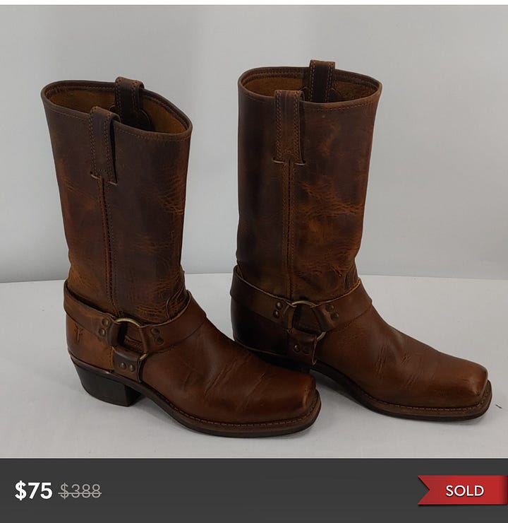 As far as what to expect from this newsletter— this all came to be due to my admittedly bizarre habit of constantly (and I mean… constantly) “window” shopping. Depop, Poshmark, eBay, TheRealReal, Offerup, Mercari and Facebook Marketplace are just a few of the apps on my phone that I check on a regular basis in addition to having many alerts set up, as well as my weekly thrift store visits. The funny thing is that I rarely buy anything, I think I just like to the thrill of the hunt and being acutely aware of what things cost so that when I do pull the trigger, I’m getting the best deal possible. As a result, I have so many odd things saved that will never fit me or fit into my home and life, that I figured it was time to unburden myself.